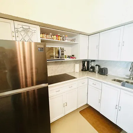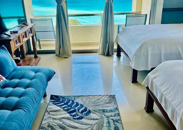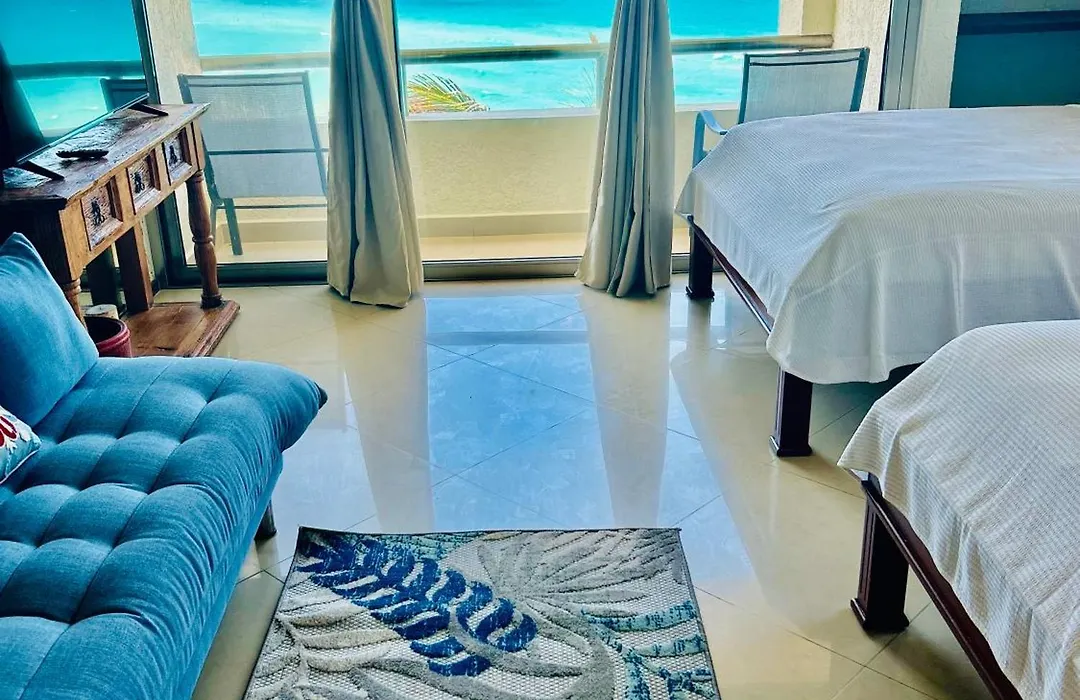 This apartment is equipped with an electric kettle, a fridge, and kitchenware, ensuring your comfort. A 16-minute drive leads to Cancun airport.